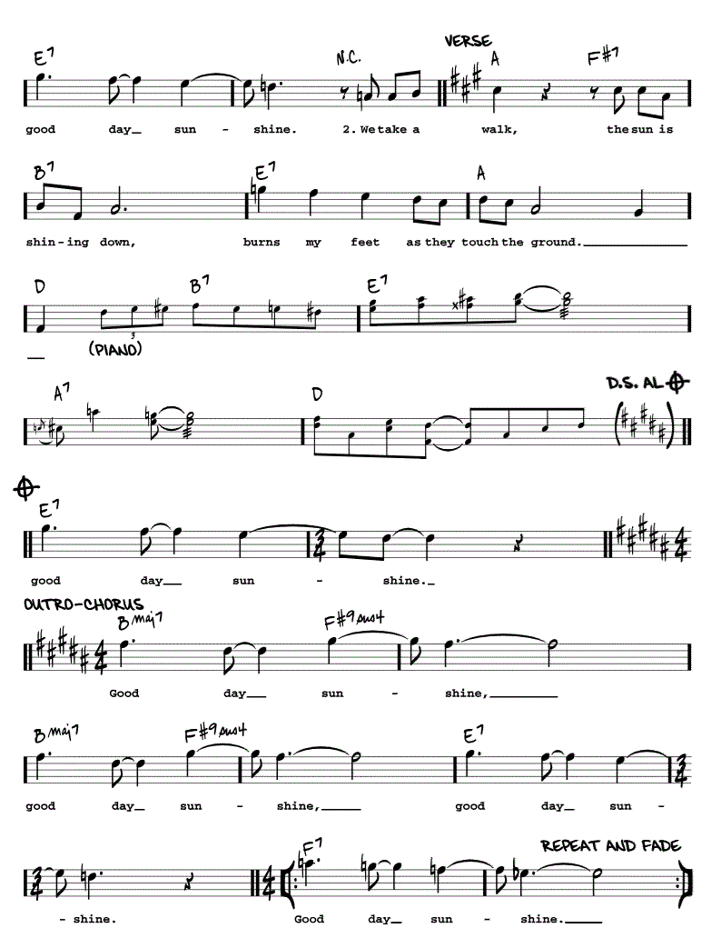 Good day sunshine, Good day sunshine, Good day sunshine, Good day sunshine