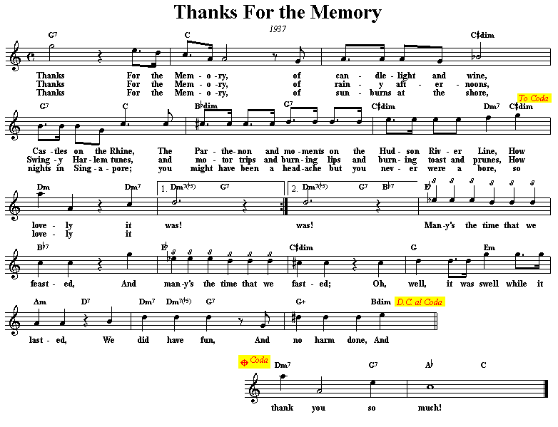 Thanks for the memory / Of sentimental verse,