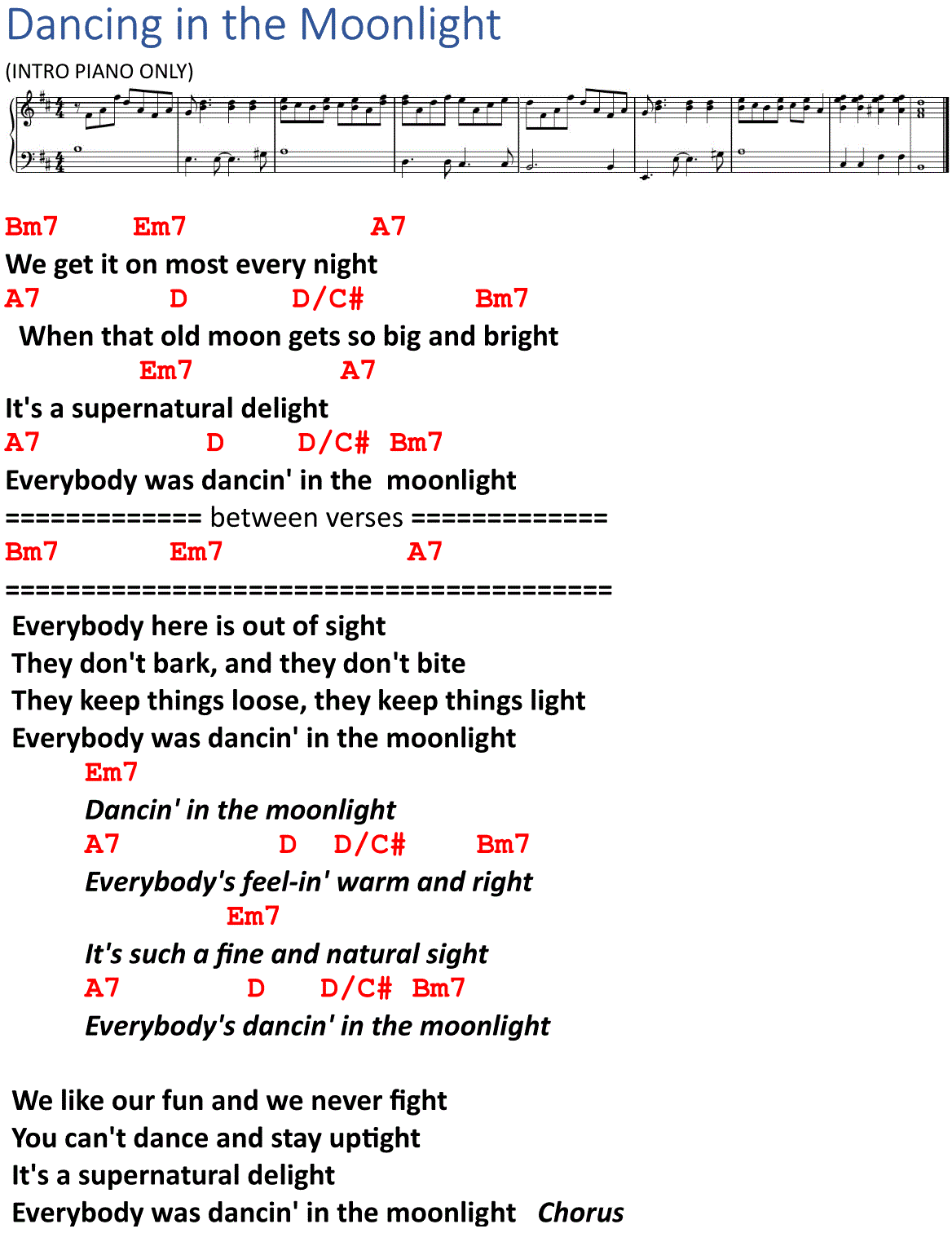 Everybody was dancin' in the moonlight Chorus and fade
